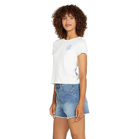 Volcom Womens Stone Step Hi Rise Shorts in Jasper blue