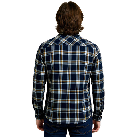 Edge Mens Fletcher Plaid Flannel Shirts in Navy