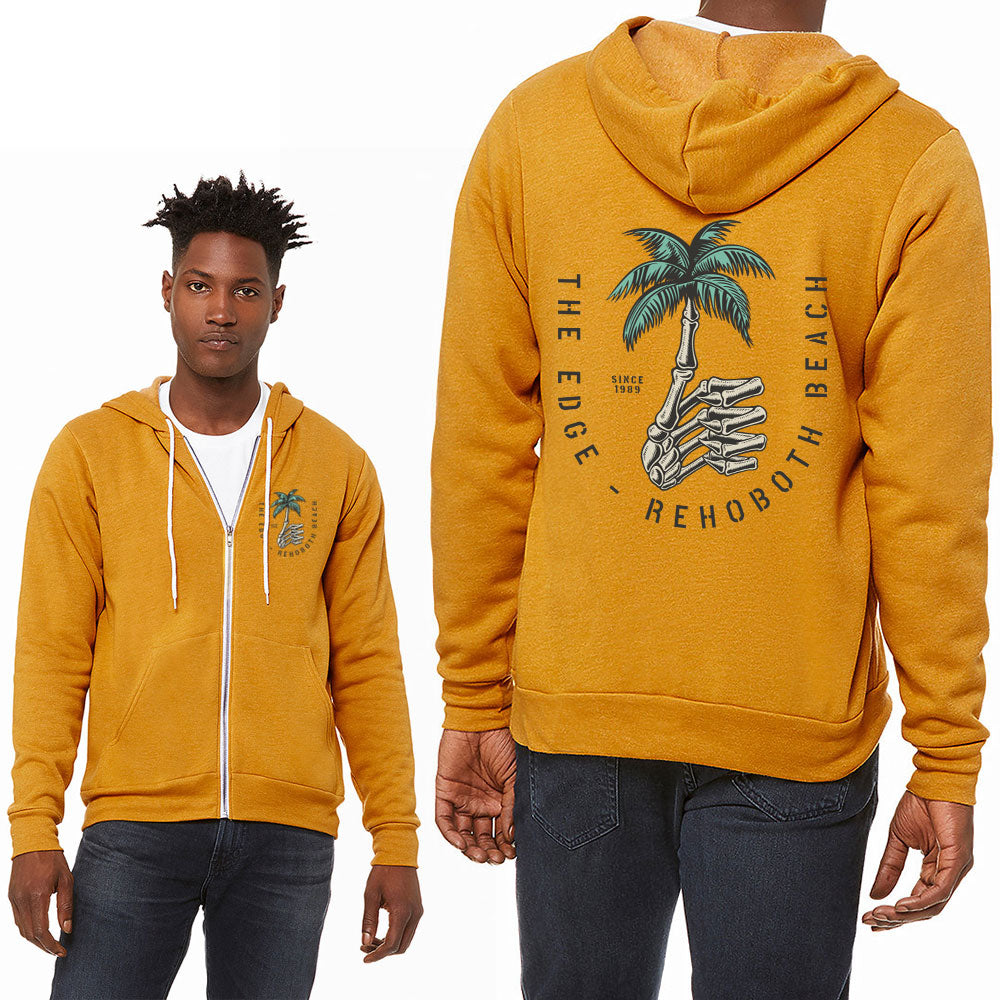 Front left chest design with the Boney Palm Tree logo with same design on back. Bella & Canvas sponge fleece. 60/40% cotton/polyester blend with tear-away tags. Metal zipper. White drawstrings. Available in Medium, Large.