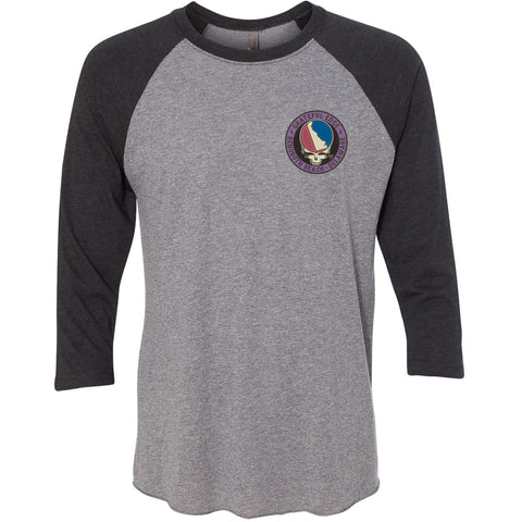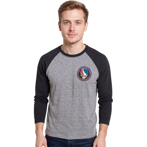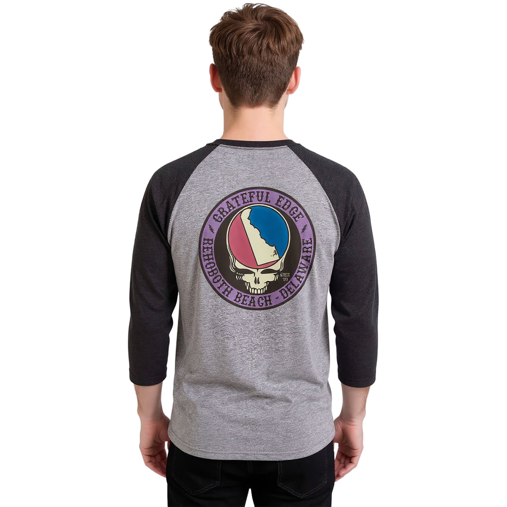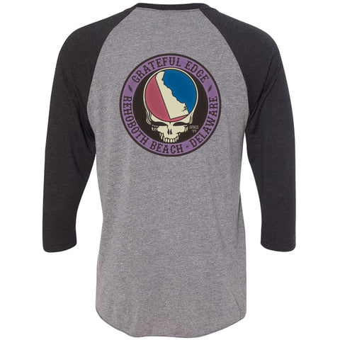 Premium Tri-blend 3/4 sleeve Baseball t-shirt. Grateful Edge design on left chest. Same logo on back. Vintage looking colors. Prewashed and Preshrunk. 50% cotton, 25% polyester, 25% rayon. Available in Small, Medium, Large, 2XL, 3XL, .