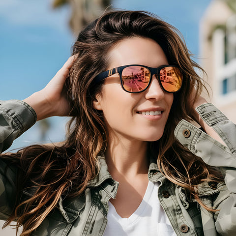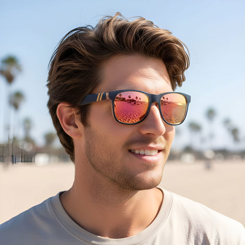 The half-transparent frame is a matte-finished cool gray on the exterior, while the interior pops with a gloss peach treatment for a satisfying color contrast. The polarized champagne lenses play perfectly alongside the peach accents, bringing a slick, sublime cohesion to this style. Even better, the whole package is backed by the elevated engineering of this upscale collection—next-level spring hinges, all-metal temple stripes, and laser-etched lenses are all included. .