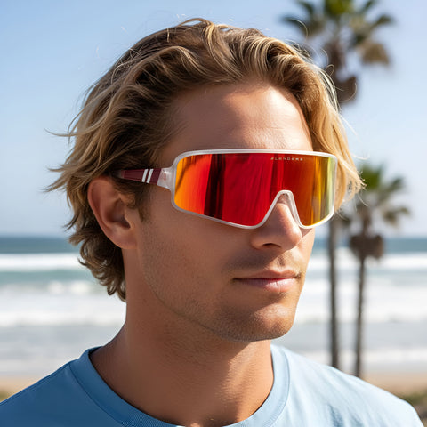 These sport sunglasses deliver a wraparound design with a polarized red lens for a wide field of view. TR90 frame construction does its part, too, offering a lightweight yet durable fit. And the colorway? It spices up your style game with crystal clear charm and flashes of fiery red. Grab a pair and blaze your own trail! .