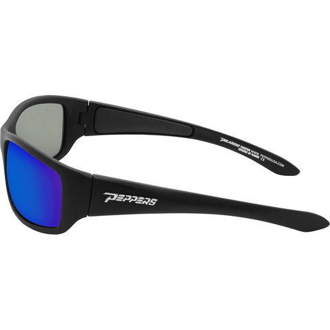 Peppers Cutthroat Polarized Floating Sunglasses in matte black and Blue mirror polarized