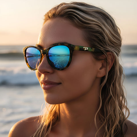Peppers Dory Polarized Floating Sunglasses in yellow green demi and blue revo polarized