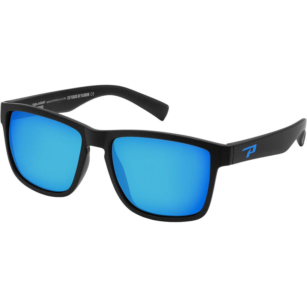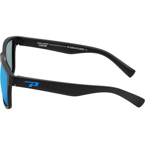 Peppers Longpointe Polarized Floating Sunglasses in matte black and blue revo polarized