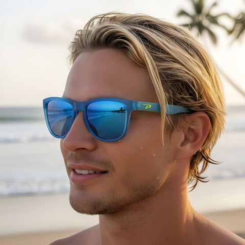 Peppers Sailfish Polarized Floating Sunglasses in matte blue w yellow and blue revo polarized