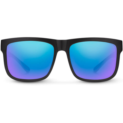 Suncloud Quiver Polarized Sunglasses in matte black and polar blue mirror