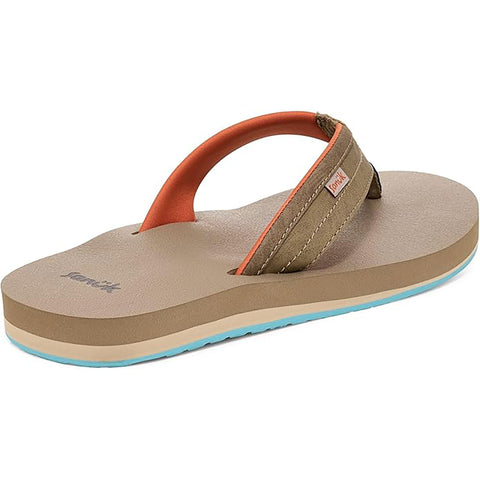 The Sanuk Ziggy sandals have the just the right amount of plush support to keep your feet cushioned and comfortable all day long. Flip-flops feature toe post, synthetic leather straps and soft textile lining. Contoured textile footbed for support. Round toe. Synthetic outsole for durable wear. Available in 8.mens, 9.mens, 10.mens, .