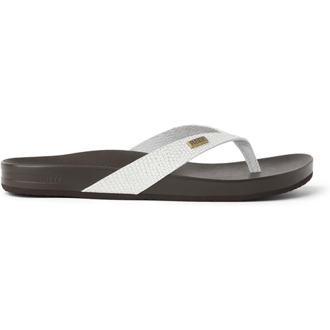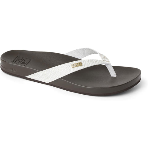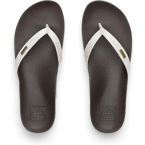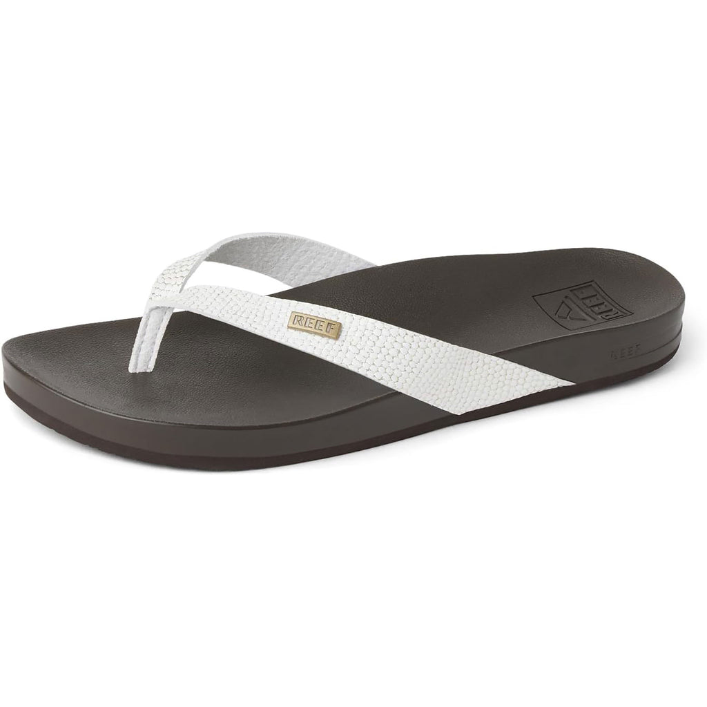 Super Soft PVC Free unlined Vegan Leather Strap tapered for a flattering look on the foot. Wider anatomical contoured footbed with generous arch support and heel cupping. Flexible rubber sponge outsole. In the court of style, these rule! We made a few subtle twists to the trusty flip flop for a refined look. The vegan leather strap is tapered, but REEF's signature cushion with high-energy rebound footbed stays the same, with maximum comfort, arch support and heel cupping. Available in 7.womens, 8.womens, 9.womens, 10.womens, .