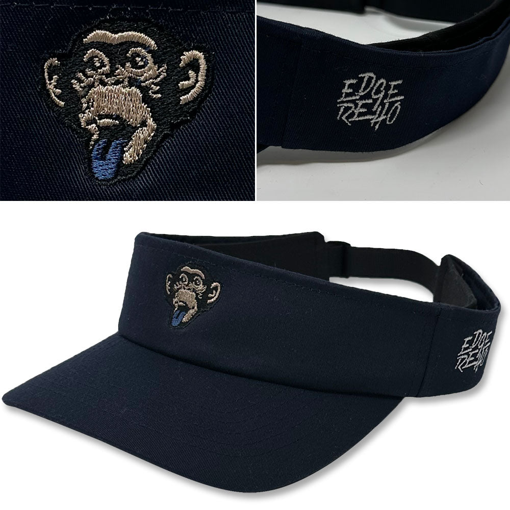 60% cotton 40% polyester visor with The Edge Monkey Business embroidered on front. Note the tonal color tongue. 'EDGE REHO' embroidery on left side. Adjustable woven strap with slide buckle. Available in One Size.