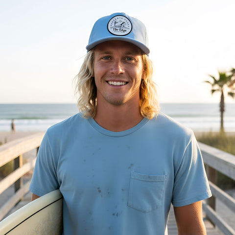 Turn heads with this A-Frame all-weather snapback that blends timeless rope styling with a unique front patch featuring a modern mermaid luonging on a surfboard, headphones on and lost in her playlist. An ocean inspired design for those who carry the beach with them year-round. Available in One Size, .