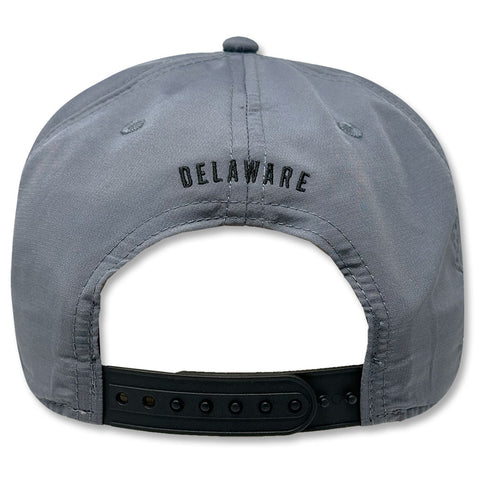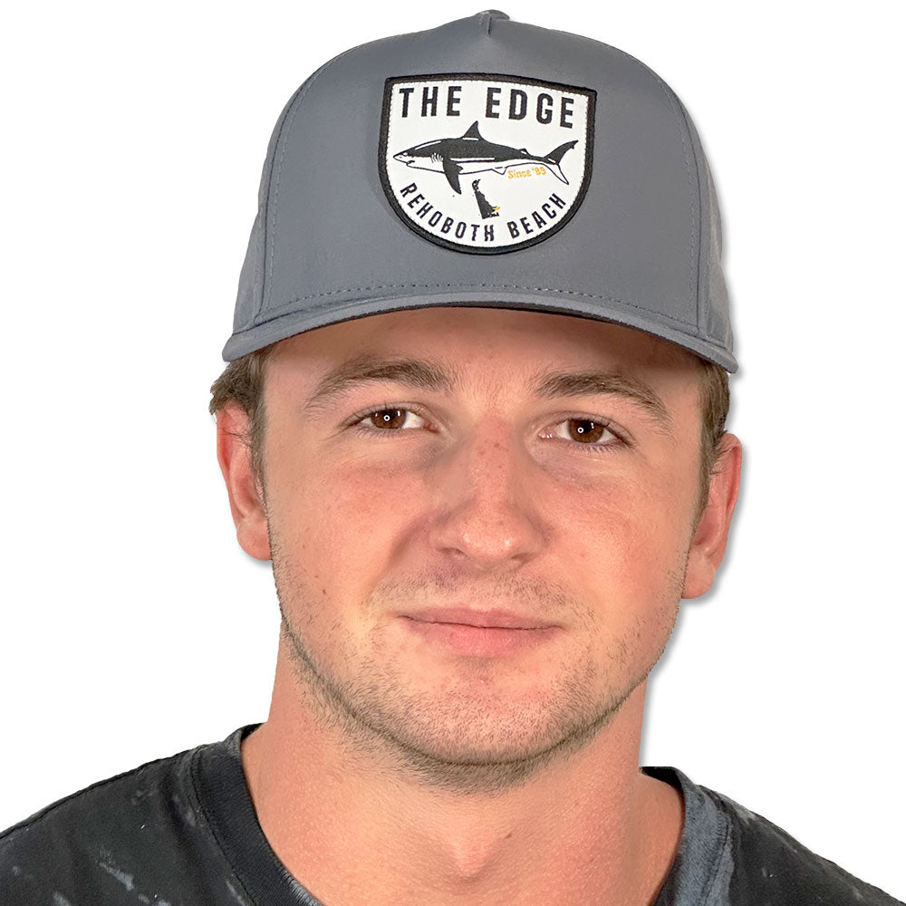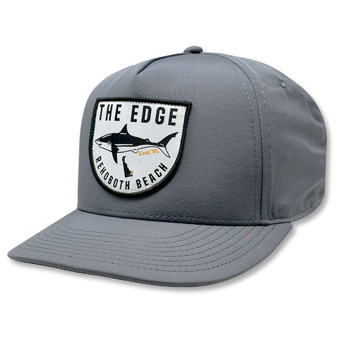 Hydro water resistant mid-crown snapback hat. Ready for any weather! Edge Shark Badge patch on front originally designed for Shark week. 5-panel construction. precurved brim. Arched Delaware embroidery on back. Available in One Size, .
