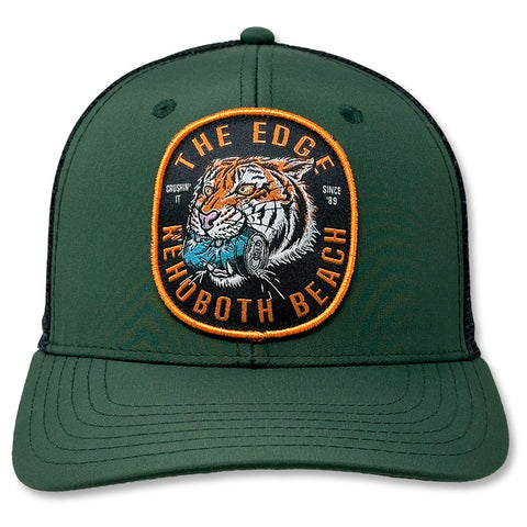 Crushing it since '89! 6-panel construction. Mesh back trucker hat with snapback closure. Edge Tiger Crush patch on front. Slight curved brim. Taped seams. Available in One Size, .