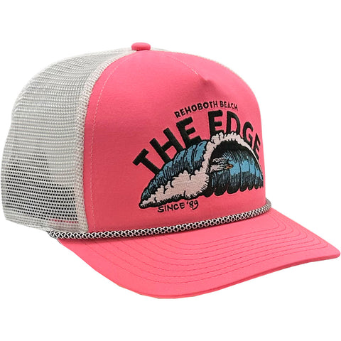 Edge Tubular Trucker Hats in hot pink/white
