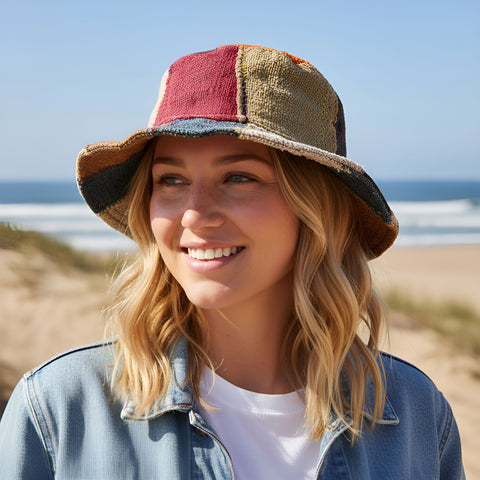 Benji Womens Hemp Patchwork Safari Hat in multi