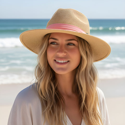 CC Womens Straw Sun Hats in natural/coral