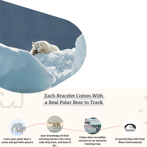 Learn your polar bear's name and get their picture. Gain knowledge of their amazing stories, how many cubs they have, and best of all... Follow their incredible venture on an exclusive tracking map. In partnership with Polar Bears International. The Venture Bracelet - Each bracelet tracks a polar bear! Available in One Size, .
