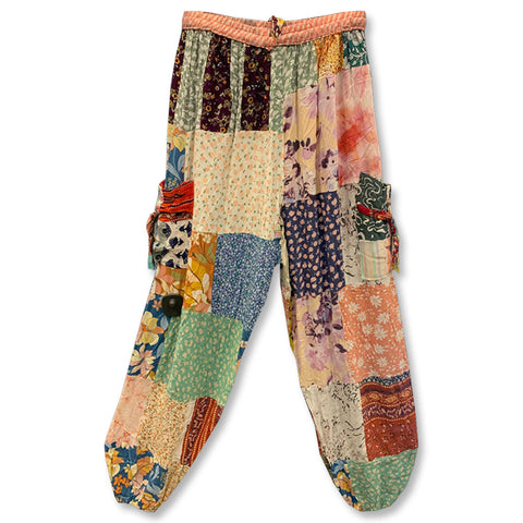 Cotton Madras Patchwork. One size fits most. Elastic Waist and leg openings. Cargo pockets with drawstrings. Each pair is unique. Made in India. Example pictured - Ask for current choices. Available in One Size, .