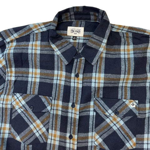Edge Mens Fletcher Plaid Flannel Shirts in Navy