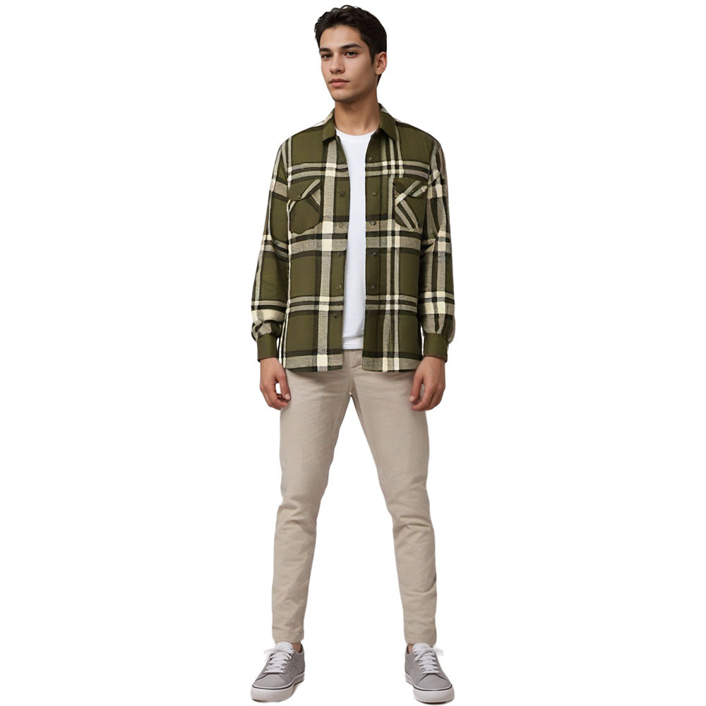 Edge Mens Reva Plaid Flannel Shirts in olive