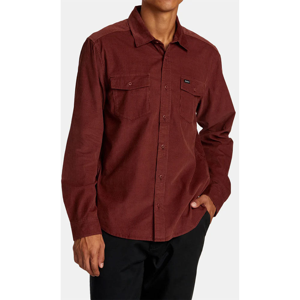 RVCA mens Freeman Cord L/S Shirts in Wine
