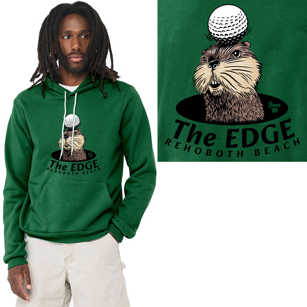 52% cotton 48% polyester hooded sweatshirt with front kangaroo pocket and front Octopus Surfer print. Plain back. Edge Original Design. Available in Medium, Large, 2XL. FREE SHIPPING!