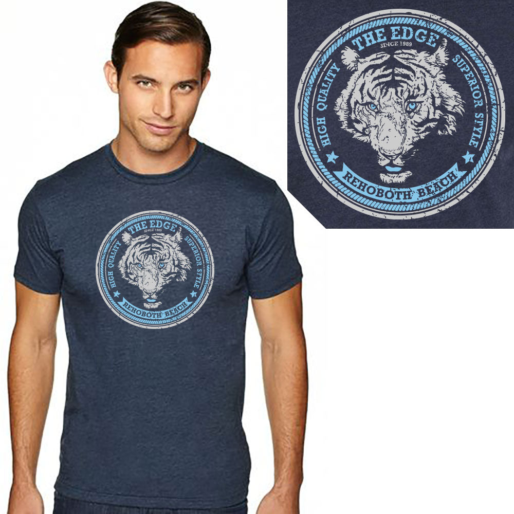 Tiger screenprint for Edge of Rehoboth Beach. Next Level Premium Tee 60/40% cotton/polyester blend with tear-away tags. Available in Large.