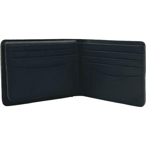 Genuine Leather rustic bi-fold wallet. 12 card slots in total. Flap out ID slot with window. Long money pouch. Embossed Edge Monkey Business logo. Available in one size.