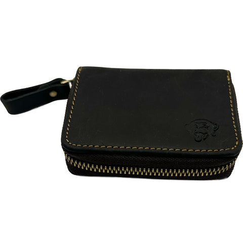 Edge Mens Leather Zippered Card Wallet in black