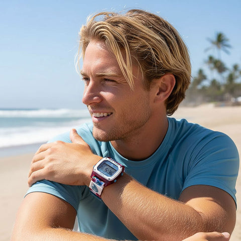 Water resistant 100M/330 FT. Original shark fin night vision backlight. Time/day/date digital display. 2 alarms. Heat timer. Chronograph. Durable nylon strap with clip closure. . FREE SHIPPING!