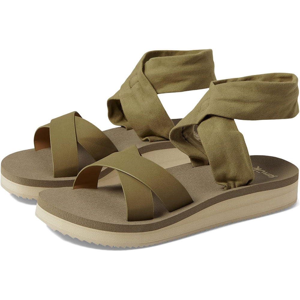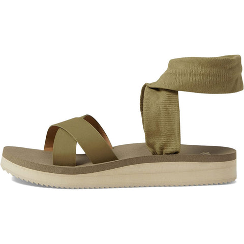 Modernized Sling upper design, featuring two-way stretch jersey heel strap made with 40% recycled plastic using traceable, verifiable REPREVE Our Ocean polyester yarn by Unifi and synthetic leather forefoot straps. Contoured high rebound Soft Top foam footbed with arch support featuring 20% Bloom foam made from repurposed materials which helps improve water and air quality. Rubber sawtooth outsole for durability, traction, and style. 1.25 inch platform height. Available in 10.womens, .